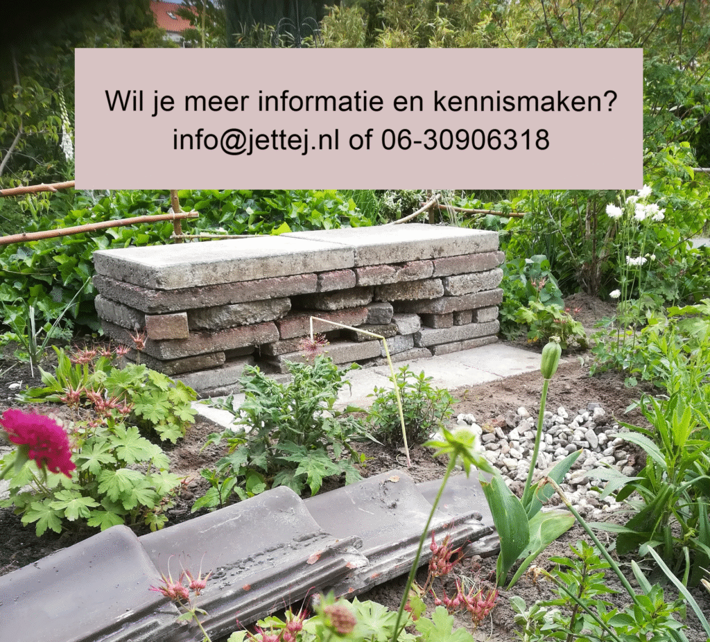 Ik ben Jette, vrouw van 50 jaar en ik heb een grote liefde voor de natuur, tuinen en vormgeving. Ik ben mijn werkende carrière begonnen als grafisch vormgever met daarnaast veel taken op het gebied van communicatie en organisatie. Ook heb ik vele jaren in de kinderopvang gewerkt en kinderen de liefde en verwondering voor de natuur mee kunnen geven.