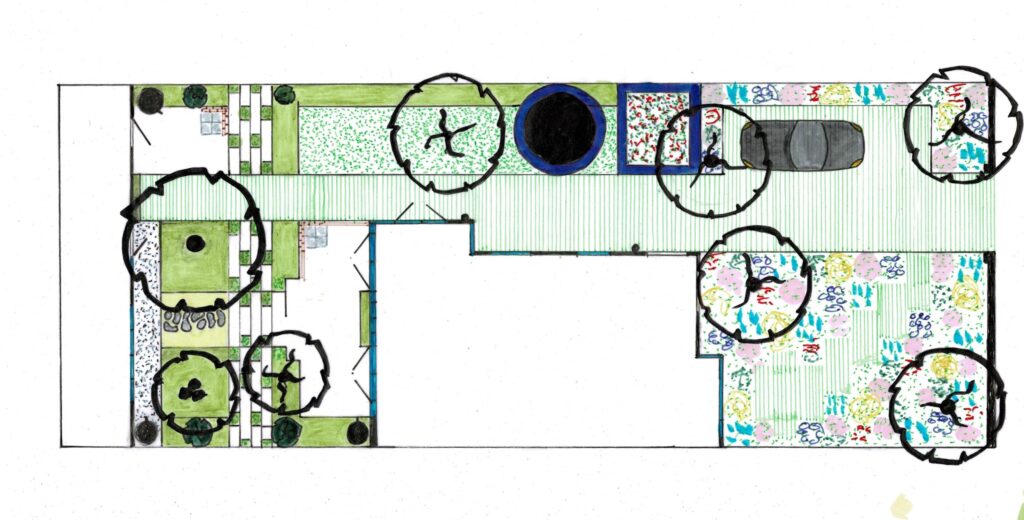 Diverse tuinontwerpen, beplantingsplannen en inspiratieschetsen